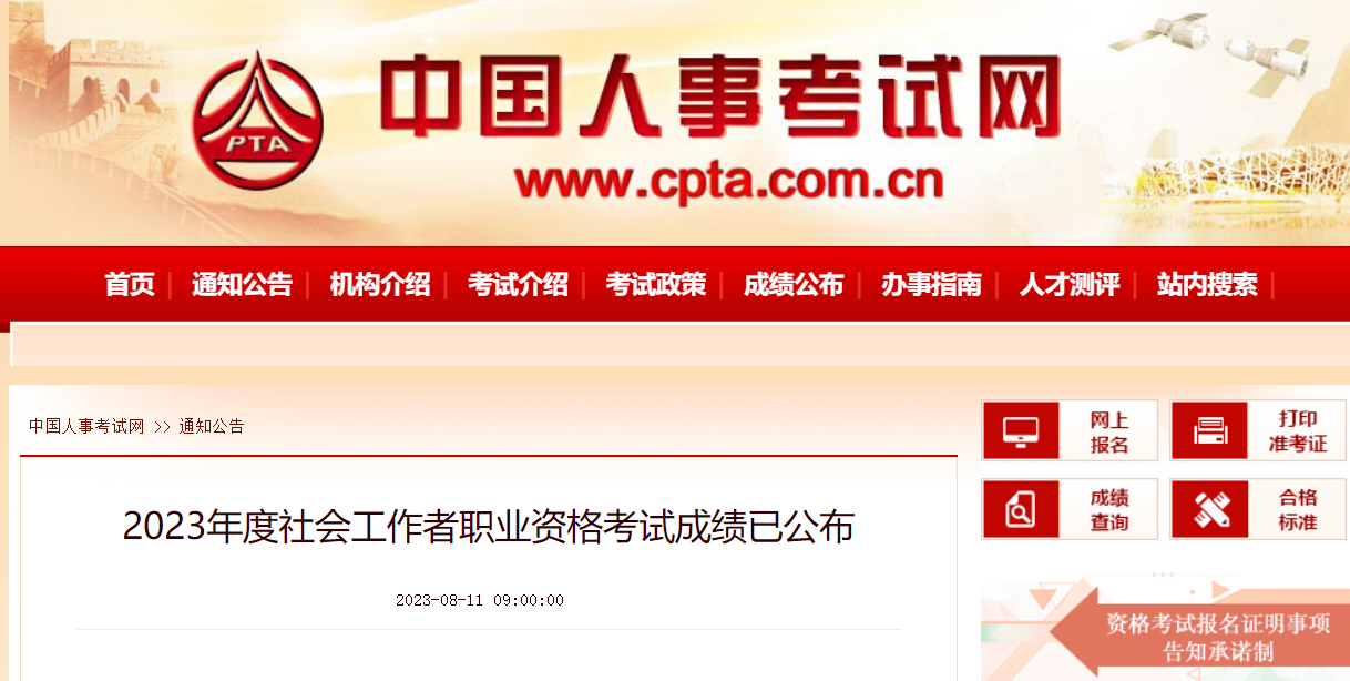 2023年山西社會(huì)工作者職業(yè)資格考試成績(jī)查詢時(shí)間為8月11日。