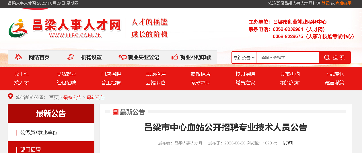 2023山西呂梁市中心血站公開招聘專業(yè)技術(shù)人員3人,報名時間:自2023年7月3日—2023年7月5日止(上午8:30--11:30,下午15:00--18:00),現(xiàn)將招聘公告原文發(fā)布如下: