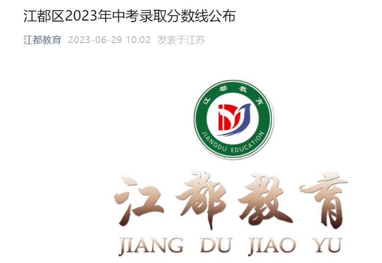 小編根據(jù)江都教育發(fā)布“江都區(qū)2023年中考錄取分?jǐn)?shù)線公布”得知,全區(qū)普通高中最低控制線為518分。