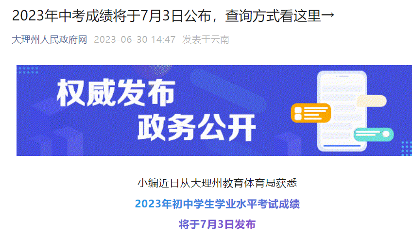 小編根據(jù)大理州人民政府網(wǎng)發(fā)布“2023年中考成績將于7月3日公布,查詢方式看這里→”得知2023年云南大理中考志愿填報時間為7月4日至7月6日,考生在“云南省初中升高中招生管理系統(tǒng)-學(xué)生端”填報普通高中志愿。