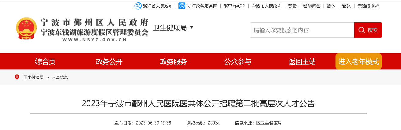 2023年浙江寧波市鄞州人民醫(yī)院醫(yī)共體公開招聘第二批高層次人才10人,報名時間:公告發(fā)布之日起至2023年7月18日,現(xiàn)將招聘公告原文發(fā)布如下: