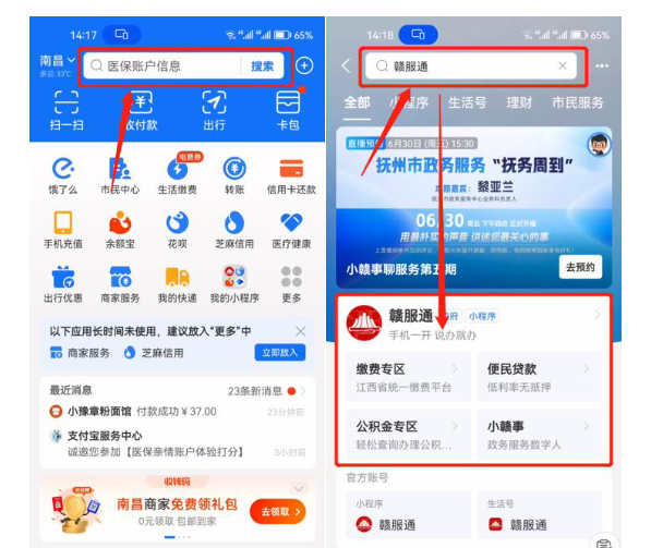 方法2:下載支付寶,在支付寶端搜索“贛服通”小程序,