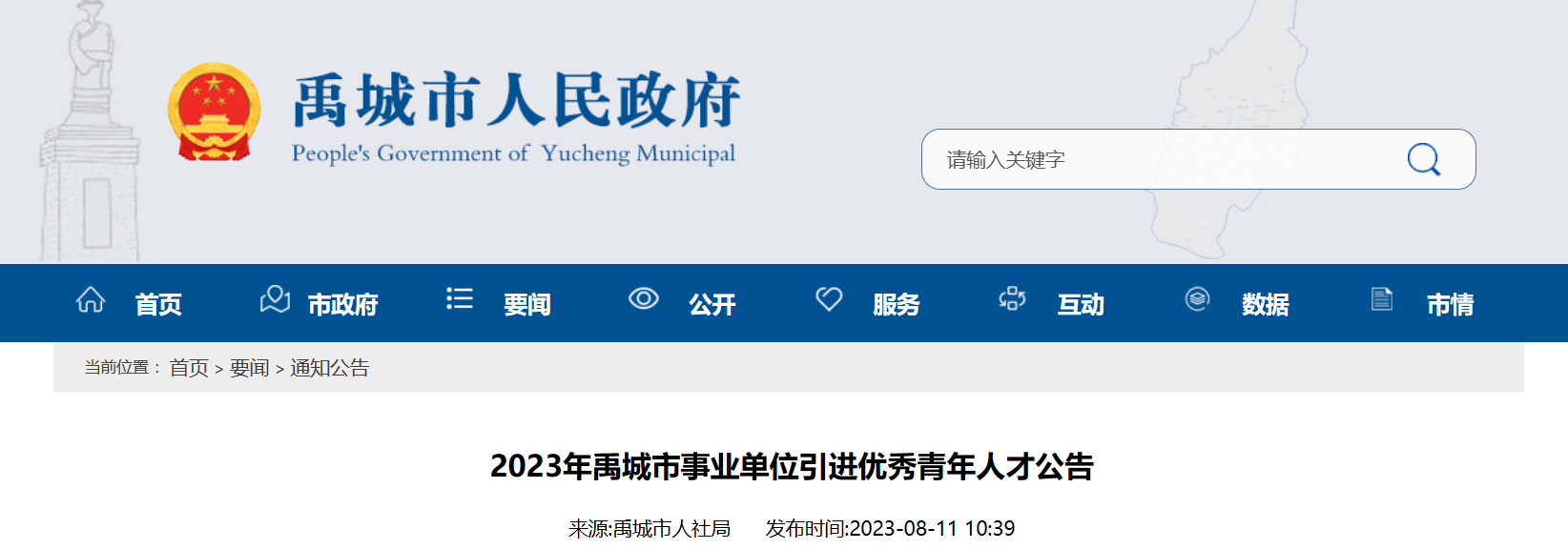 2023年山東省德州市禹城市事業(yè)單位引進(jìn)優(yōu)秀青年人才63人。報(bào)名時(shí)間:2023年8月22日9:00—8月24日16:00?,F(xiàn)將公告原文發(fā)布如下: