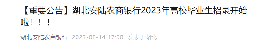 2023年湖北安陸農(nóng)商銀行高校畢業(yè)生招錄15人,報名時間:2023年8月14日11:00至8月18日17:30,現(xiàn)將招聘公告發(fā)布如下: