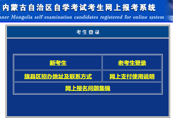 已經(jīng)參加過(guò)我區(qū)自學(xué)考試或已經(jīng)進(jìn)行過(guò)現(xiàn)場(chǎng)信息采集,擁有準(zhǔn)考證號(hào)的老考生,在規(guī)定時(shí)間內(nèi)直接登錄內(nèi)蒙古招生考試信息網(wǎng)(https://www.nm.zsks.cn/)自學(xué)考試欄目報(bào)名報(bào)考系統(tǒng)選課、繳費(fèi)即可,無(wú)需再到現(xiàn)場(chǎng)辦理。