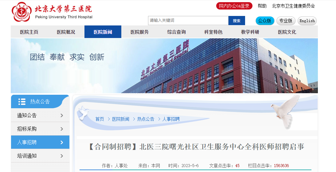 2023北京大學(xué)第三醫(yī)院曙光社區(qū)衛(wèi)生服務(wù)中心全科醫(yī)師招聘2人,報名截止日期:2023年12月31日,現(xiàn)將招聘公告原文發(fā)布如下: