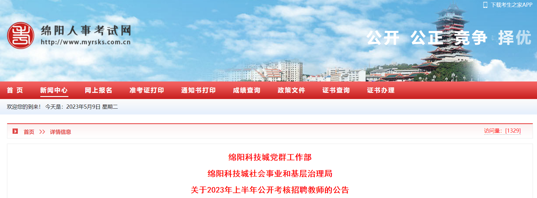 原文標(biāo)題:綿陽科技城黨群工作部 綿陽科技城社會(huì)事業(yè)和基層治理局 關(guān)于2023年上半年公開考核招聘教師的公告