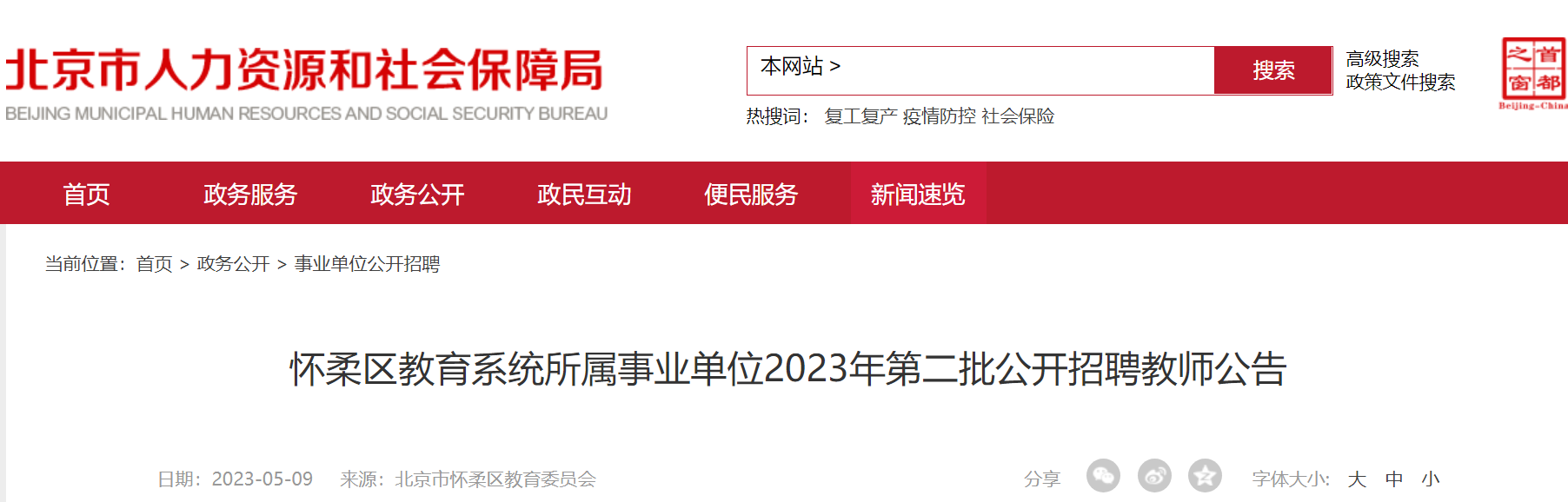 【點擊進入:2023年北京懷柔區(qū)教育系統(tǒng)所屬事業(yè)單位第二批公開招聘教師報名入口】