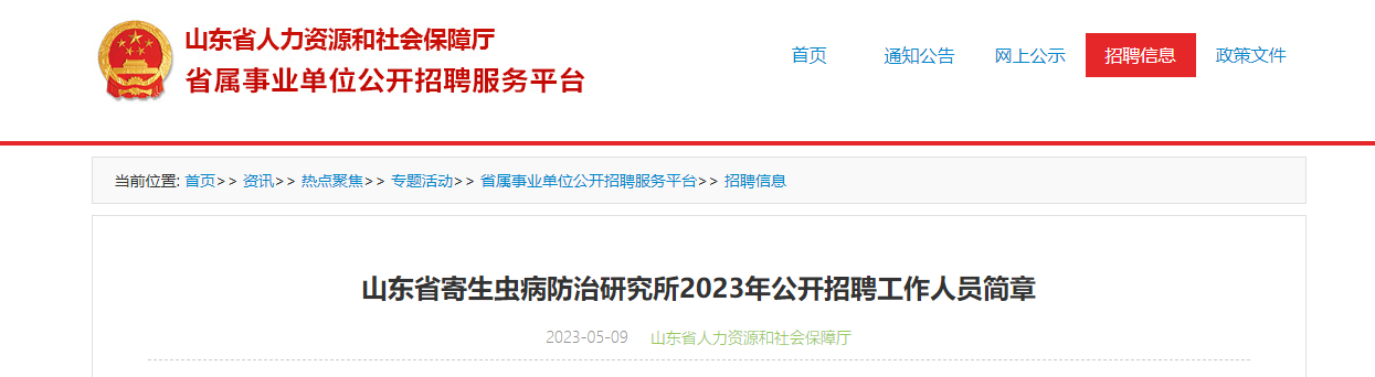 2023年山東省寄生蟲病防治研究所公開招聘工作人員,報(bào)名時(shí)間:2023年5月10日9:00-5月18日16:00,現(xiàn)將招聘公告原文發(fā)布如下: