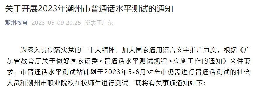 原文標(biāo)題:關(guān)于開展2023年潮州市普通話水平測試的通知