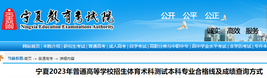 體育高考頻道從寧夏教育考試院了解到,2023年寧夏高考體育術科測試本科專業(yè)合格線及成績查詢方式已公布,具體如下: