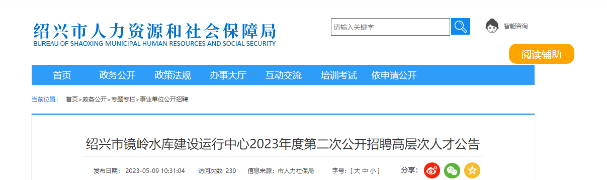 2023年浙江省紹興市鏡嶺水庫(kù)建設(shè)運(yùn)行中心第二次招聘高層次人才3人。網(wǎng)上報(bào)名時(shí)間:2023年5月9日至5月17日。現(xiàn)將公告原文發(fā)布如下:
