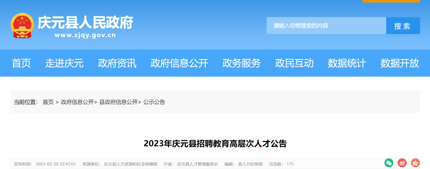 慶元縣政府門戶網(wǎng)站(http://www.zjqy.gov.cn/,公示公告欄)。