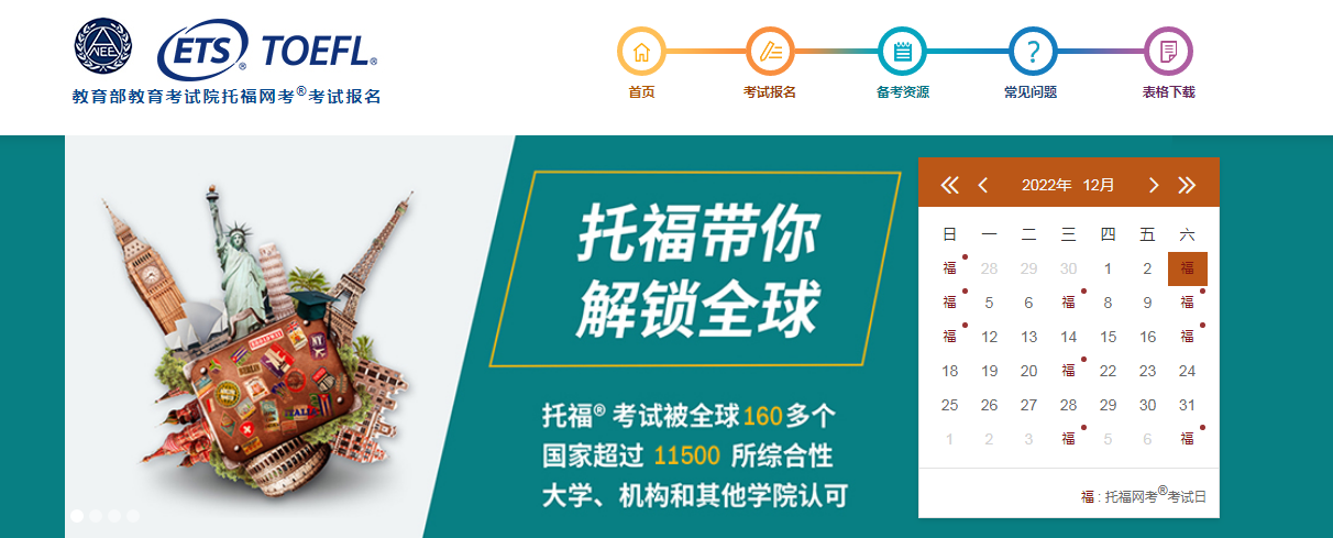 點擊進(jìn)入>>>2022年12月托福考試報名入口