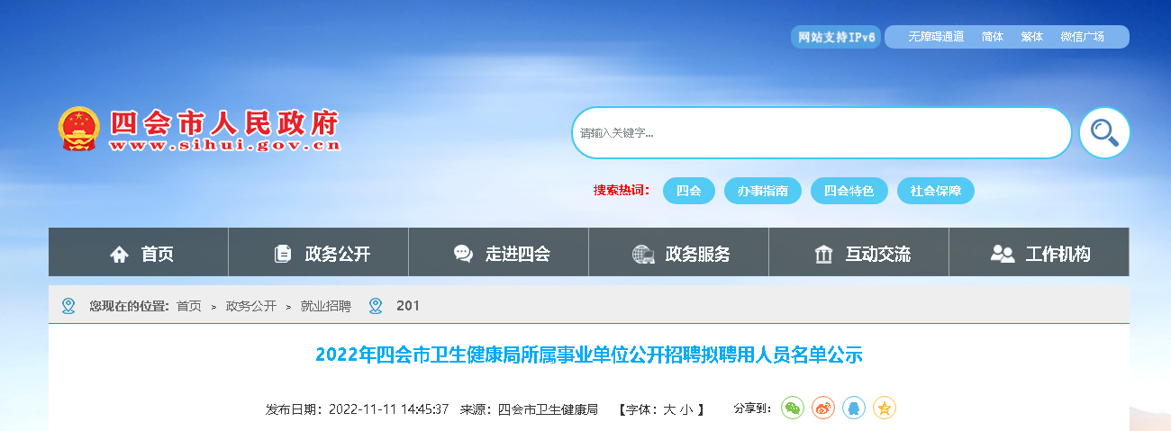 2022廣東肇慶市四會(huì)市衛(wèi)生健康局所屬事業(yè)單位招聘擬聘用人員名單公示已出,公示時(shí)間:2022年11月11日至11月21日,現(xiàn)將招聘公示原文發(fā)布如下: