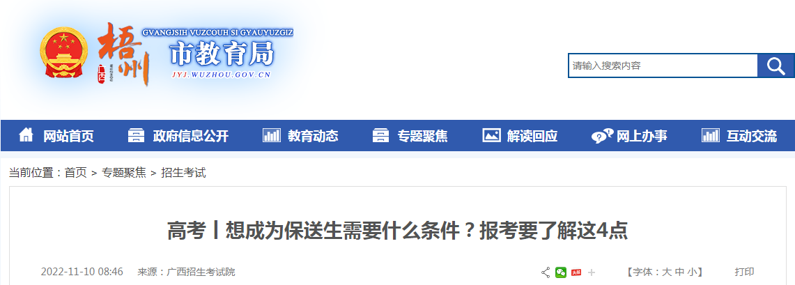 從廣西梧州市教育局了解到,高校保送生招生條件已公布,詳細(xì)內(nèi)容如下: