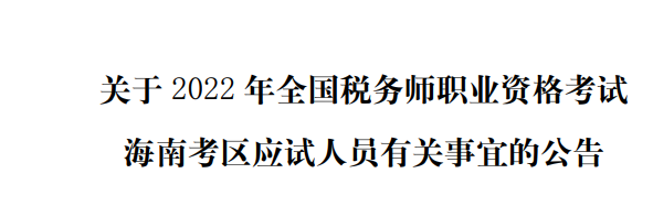 原標(biāo)題:關(guān)于2022年全國(guó)稅務(wù)師職業(yè)資格考試海南考區(qū)應(yīng)試人員有關(guān)事宜的公告