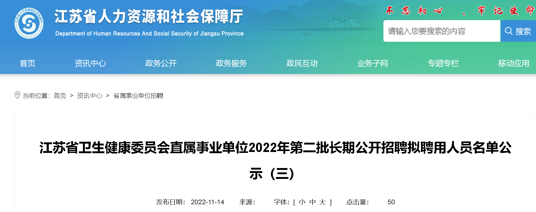 江蘇省衛(wèi)生健康委員會(huì)直屬事業(yè)單位2022年長(zhǎng)期公開招聘擬聘用人員名單(第三批)