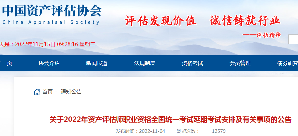 小編根據(jù)中國(guó)資產(chǎn)評(píng)估協(xié)會(huì)發(fā)布“關(guān)于2022年資產(chǎn)評(píng)估師職業(yè)資格全國(guó)統(tǒng)一考試延期考試安排及有關(guān)事項(xiàng)的公告”得知,2022年資產(chǎn)評(píng)估師考試時(shí)間為2022年12月3日-12月4日,詳細(xì)如下: