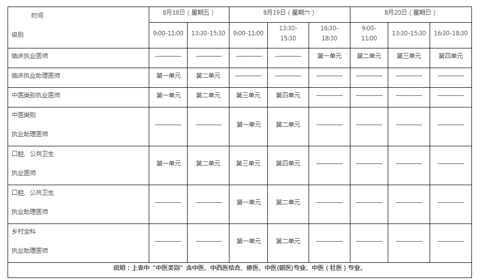 蒙醫(yī)、藏醫(yī)、維醫(yī)、哈薩克醫(yī)實(shí)行紙筆考試。其他類別實(shí)行計(jì)算機(jī)化考試。軍隊(duì)現(xiàn)役人員加試軍事醫(yī)學(xué),院前急救崗位和兒科專業(yè)加試相應(yīng)內(nèi)容。除蒙醫(yī)、藏醫(yī)、維醫(yī)、傣醫(yī)、哈薩克醫(yī)、中醫(yī)(朝醫(yī))專業(yè)、中醫(yī)(壯醫(yī))專業(yè)外,執(zhí)業(yè)醫(yī)師合格分?jǐn)?shù)線為360分,執(zhí)業(yè)助理醫(yī)師合格分?jǐn)?shù)線為180分。2023年吉林口腔助理醫(yī)師醫(yī)學(xué)綜合考試時(shí)間如下: