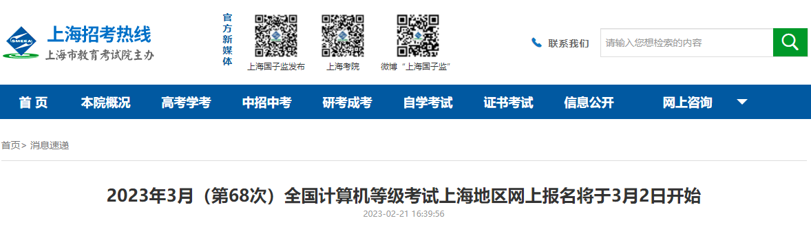 原文標(biāo)題:2023年3月(第68次)全國計(jì)算機(jī)等級(jí)考試上海地區(qū)網(wǎng)上報(bào)名將于3月2日開始