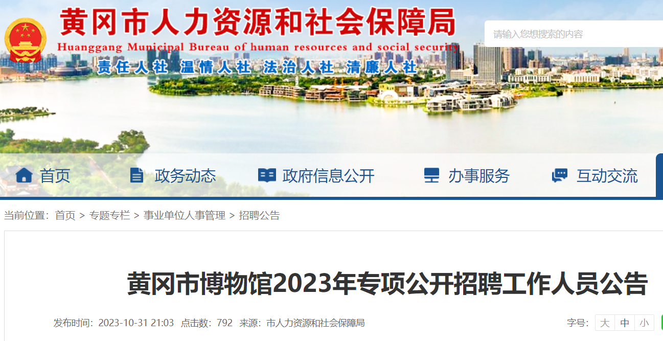 小編根據(jù)黃岡市人力資源和社會保障局發(fā)布“黃岡市博物館2023年專項公開招聘工作人員公告”得知,2023年湖北黃岡市博物館專項公開招聘工作人員2名,報名時間為11月6日至11月8日。