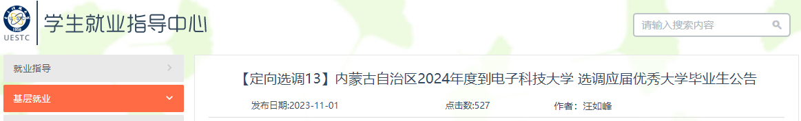 從電子科技大學(xué)就業(yè)網(wǎng)了解到,2024年內(nèi)蒙古到電子科技大學(xué)選調(diào)應(yīng)屆優(yōu)秀大學(xué)畢業(yè)生,相關(guān)事宜詳情如下: