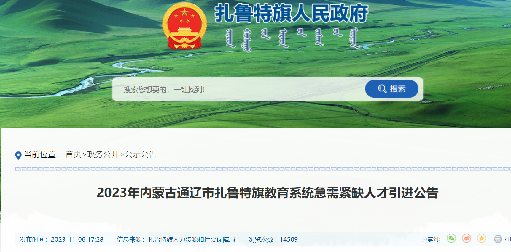 2023年內(nèi)蒙古通遼市扎魯特旗教育系統(tǒng)引進(jìn)緊缺人才9人,報(bào)名時(shí)間:2023年11月11日(星期六)上午9:00至12:00?,F(xiàn)將招聘公告原文發(fā)布如下: