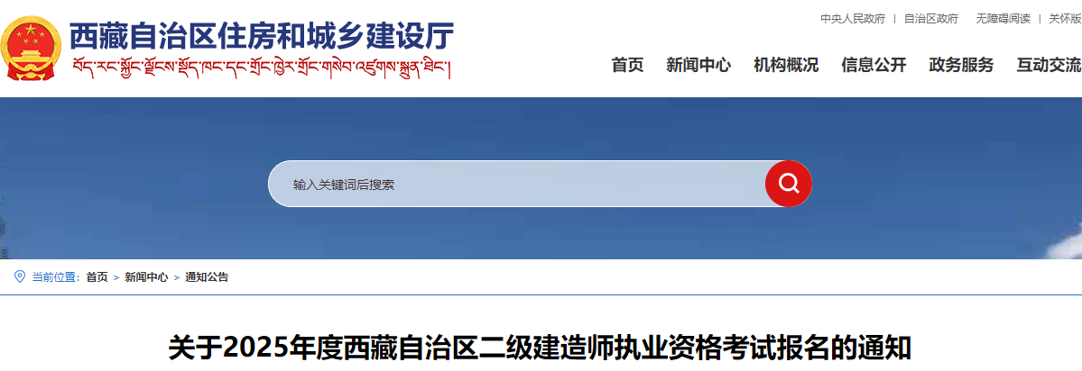 從西藏自治區(qū)住房和城鄉(xiāng)建設廳發(fā)布的《2025年西藏自治區(qū)二級建造師執(zhí)業(yè)資格考試報名的通知》中獲悉,2025年西藏二級建造師考試時間將于5月10日-11日舉行,預祝廣大考生順利通過考試!