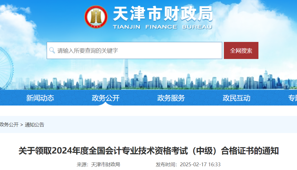 小編根據(jù)天津市財政局發(fā)布“關(guān)于領(lǐng)取2024年度全國會計專業(yè)技術(shù)資格考試(中級)合格證書的通知”得知,天津2024年中級會計證書領(lǐng)取時間為2025年2月24日-3月7日,詳情如下: