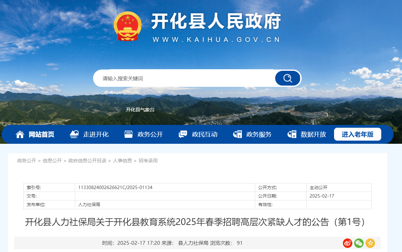 通過開化縣人民政府網(wǎng)(開化縣人力資源和社會(huì)保障局https://www.kaihua.gov.cn/col/col1229553694/index.html)和相關(guān)高校等網(wǎng)站向社會(huì)發(fā)布招聘信息。