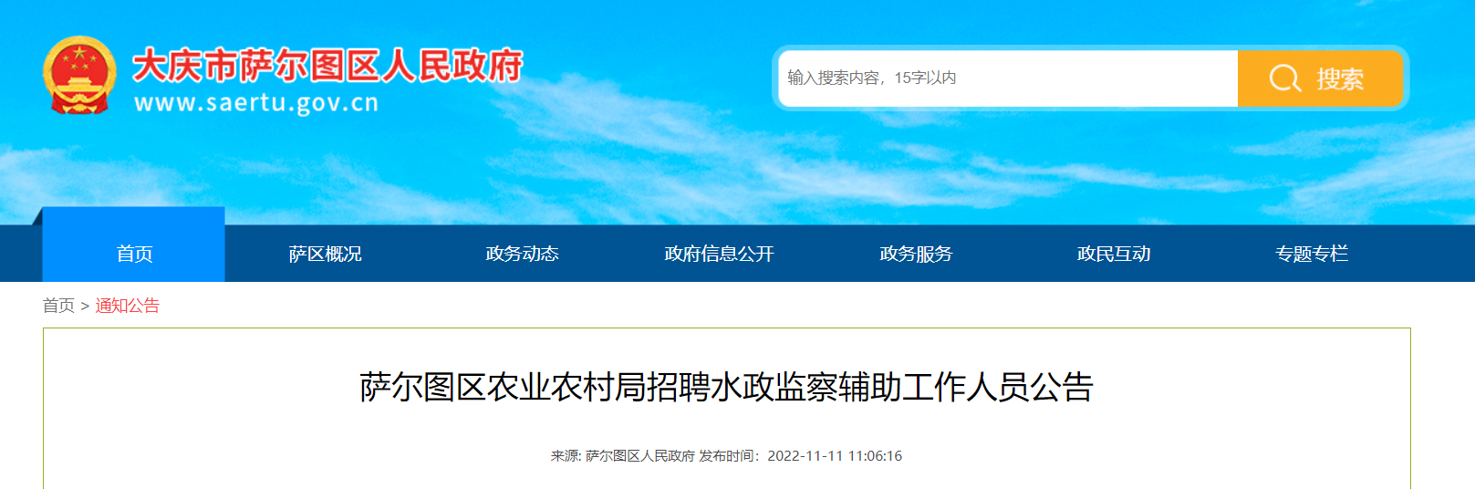原文標題:薩爾圖區(qū)農業(yè)農村局招聘水政監(jiān)察輔助工作人員公告