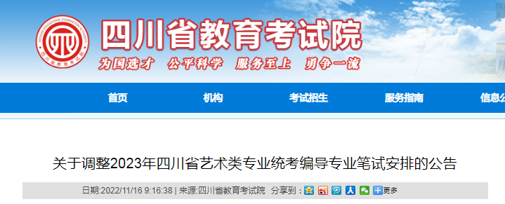 從四川省教育考試院了解到,關(guān)于調(diào)整2023年四川省藝術(shù)類專業(yè)統(tǒng)考編導(dǎo)專業(yè)筆試安排的公告已發(fā)布,詳細(xì)內(nèi)容如下: