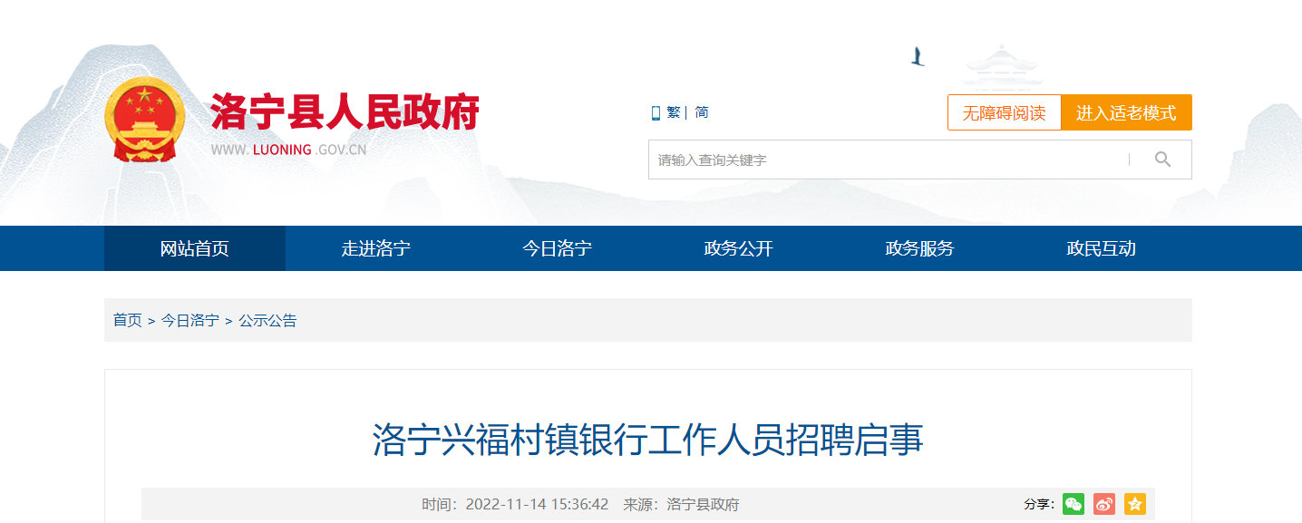 原文標題:洛寧興福村鎮(zhèn)銀行工作人員招聘啟事