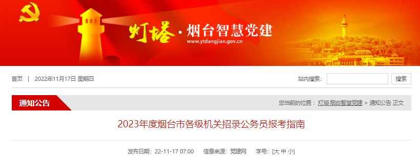 《2023年度煙臺市各級機關(guān)招錄公務(wù)員報考指南》僅適用于2023年煙臺市各級機關(guān)公務(wù)員招錄。