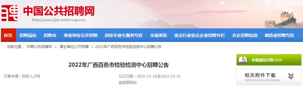 2022年廣西壯族自治區(qū)百色市檢驗檢測中心招聘公告已發(fā)布。報名時間:11月18日(星期五)09:00—16:00?,F(xiàn)將公告原文發(fā)布如下: