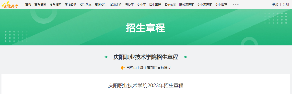 從教育部陽光高考信息公開平臺了解到,甘肅慶陽職業(yè)技術(shù)學(xué)院2023年招生章程已公布,詳細(xì)內(nèi)容如下: