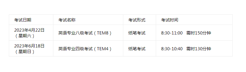 原文標題:【考試通知】關(guān)于2023年度高等學校英語專業(yè)四、八級考試(TEM)報名工作的通知