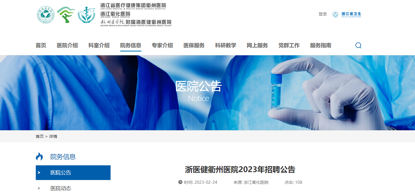 浙醫(yī)健衢州醫(yī)院(浙江衢化醫(yī)院)根據(jù)醫(yī)院發(fā)展需要,經(jīng)研究,現(xiàn)公開招聘員工37人,現(xiàn)將有關(guān)事項(xiàng)公告如下: