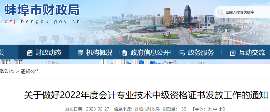 小編根據(jù)蚌埠市財政局發(fā)布“關(guān)于做好2022年度會計專業(yè)技術(shù)中級資格證書發(fā)放工作的通知”得知,2022年安徽蚌埠中級會計職稱證書發(fā)放時間為2022年3月1日至3月31日,線上郵寄發(fā)證、線下自取發(fā)證方式,具體如下: