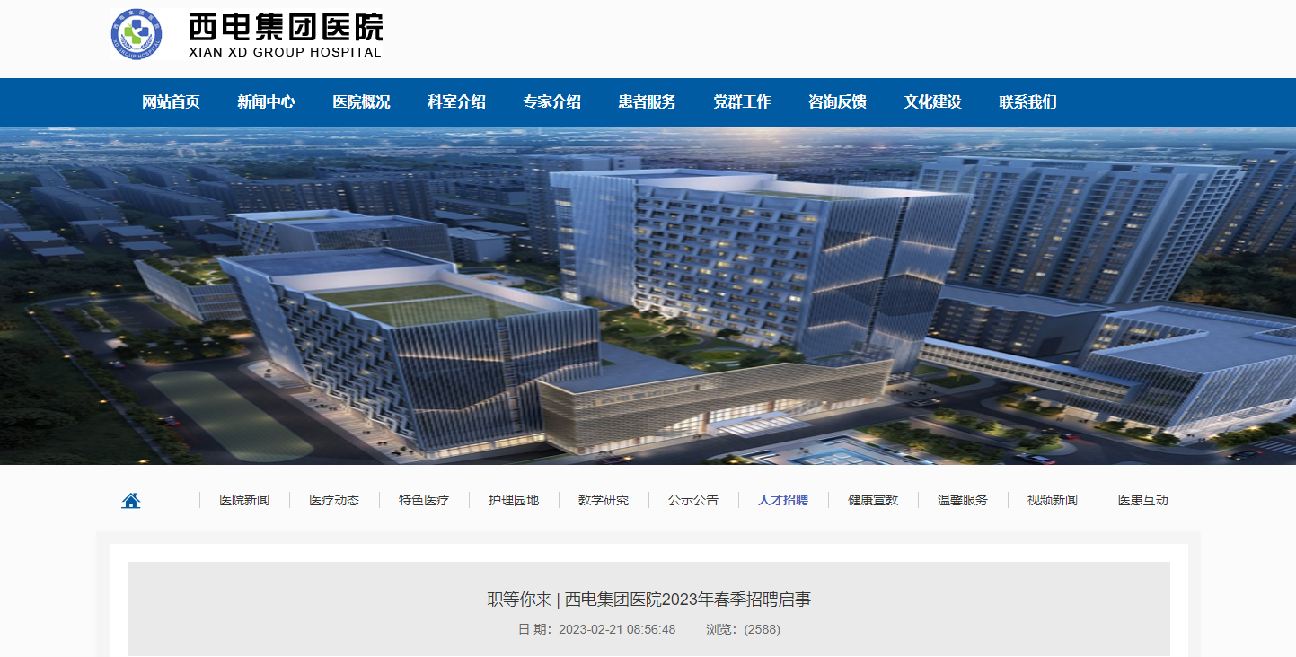 原文標題:職等你來|西電集團醫(yī)院2023年春季招聘啟事