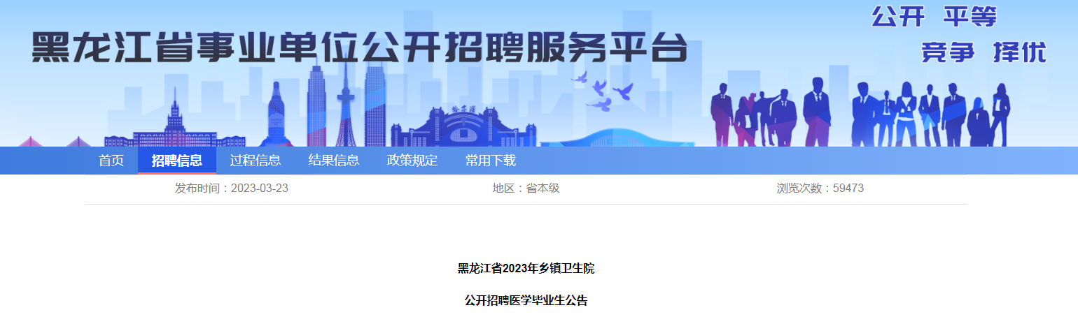 2023黑龍江省鄉(xiāng)鎮(zhèn)衛(wèi)生院招聘醫(yī)學(xué)畢業(yè)生300人,報名時間:2023年4月1日至5月31日,現(xiàn)將招聘公告原文發(fā)布如下: