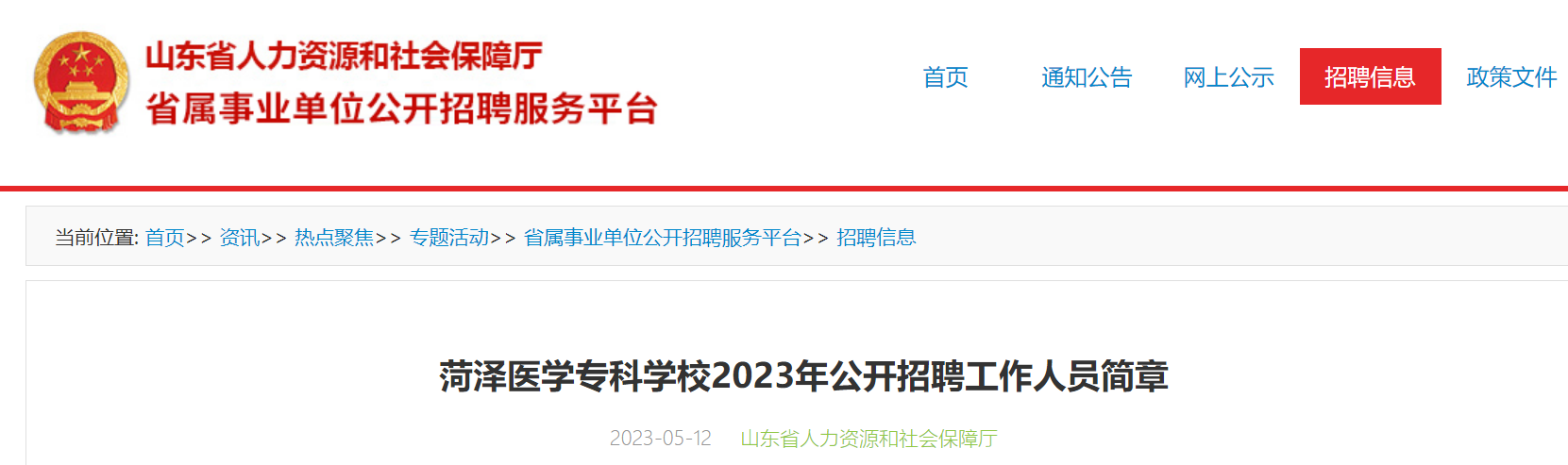 2023年山東菏澤醫(yī)學(xué)專(zhuān)科學(xué)校公開(kāi)招聘工作人員報(bào)名入口