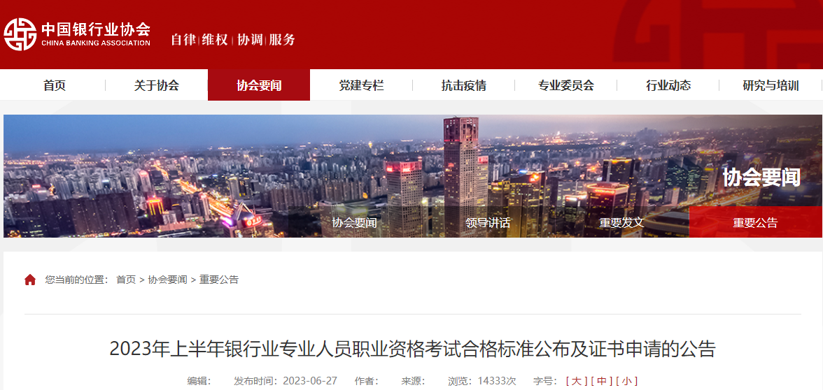 小編根據(jù)中國銀行業(yè)協(xié)會發(fā)布“2023年上半年銀行業(yè)專業(yè)人員職業(yè)資格考試合格標(biāo)準(zhǔn)公布及證書申請的公告”得知,2023年上半年廣西銀行從業(yè)資格考試初級和中級各科目合格標(biāo)準(zhǔn)均為60分,證書申請時間為2023年6月28日至7月10日,詳情如下: