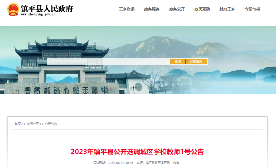 2023河南南陽市鎮(zhèn)平縣選調(diào)城區(qū)學校教師170人,報名時間:2023年7月3日至7日?,F(xiàn)將招聘公告原文發(fā)布如下: