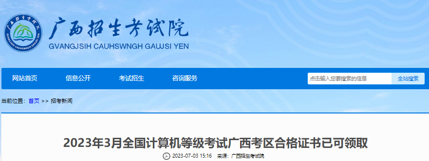 2023年3月全國計(jì)算機(jī)等級(jí)考試廣西考區(qū)合格證書已可領(lǐng)取,下面將證書領(lǐng)取通知內(nèi)容整理如下,供大家參考,考生可據(jù)需求自行選擇領(lǐng)取方式。更多計(jì)算機(jī)等級(jí)考試的資訊,我們會(huì)持續(xù)更新,敬請(qǐng)關(guān)注。