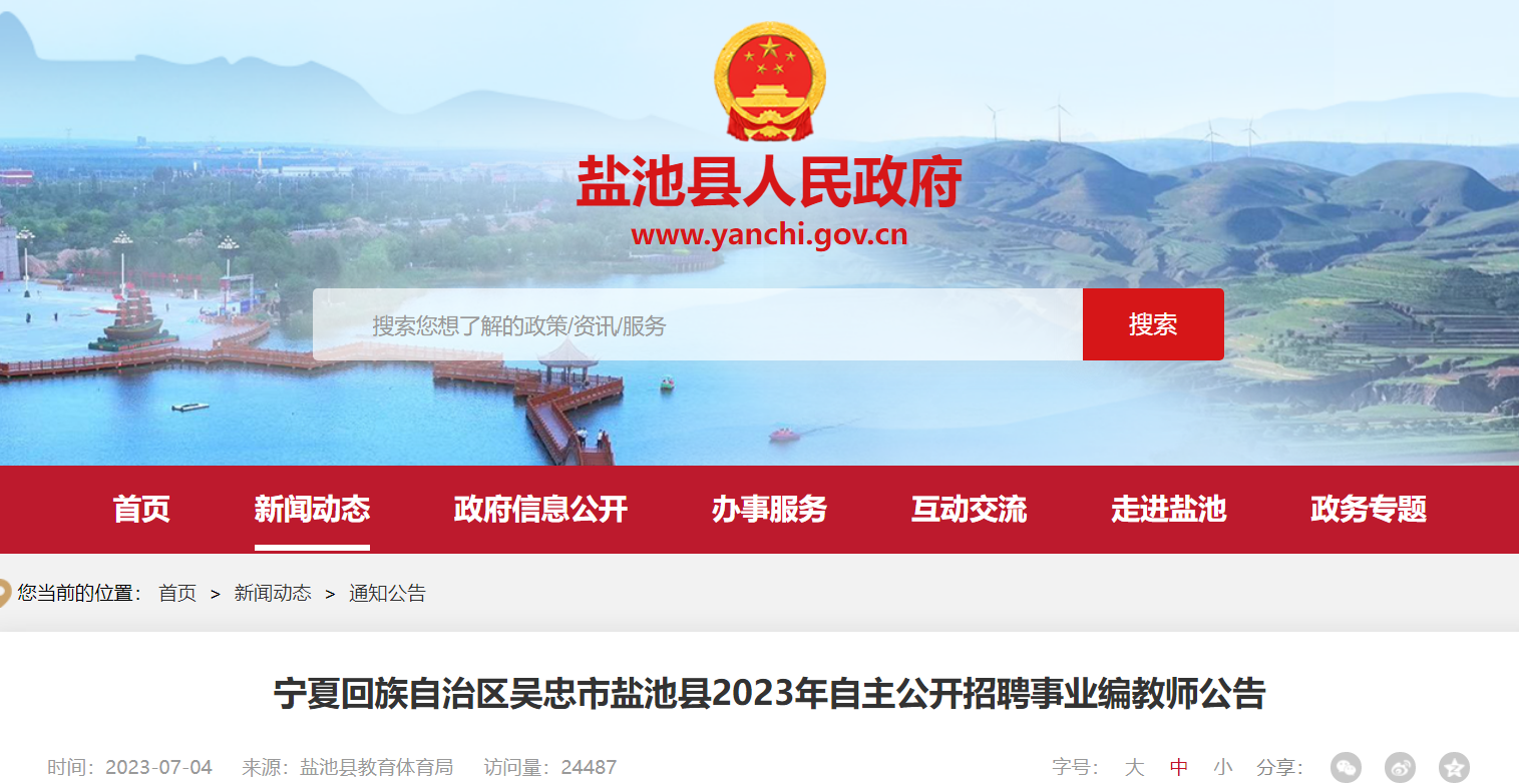 2023寧夏吳忠市鹽池縣自主公開(kāi)招聘事業(yè)編教師44人,報(bào)名時(shí)間:2023年7月12日上午8:30至7月16日下午18:30(節(jié)假日正常)?,F(xiàn)將招聘公告原文發(fā)布如下:
