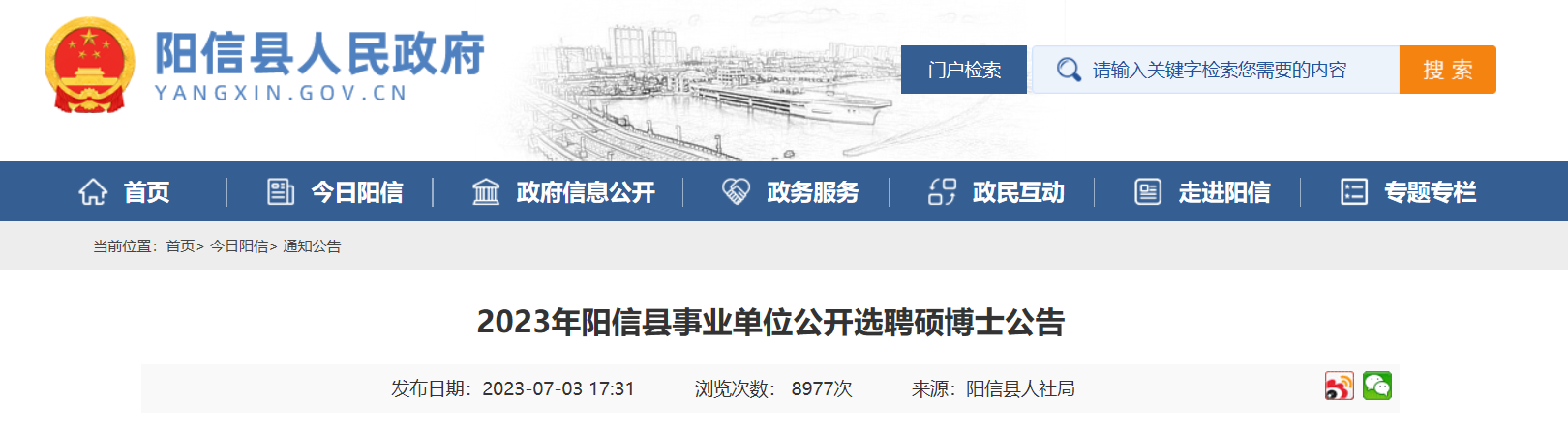 2023年山東省濱州陽信縣事業(yè)單位選聘55名碩博士。報(bào)名時(shí)間:2023年7月10日9:00—2023年7月13日12:00?,F(xiàn)將公告原文發(fā)布如下: