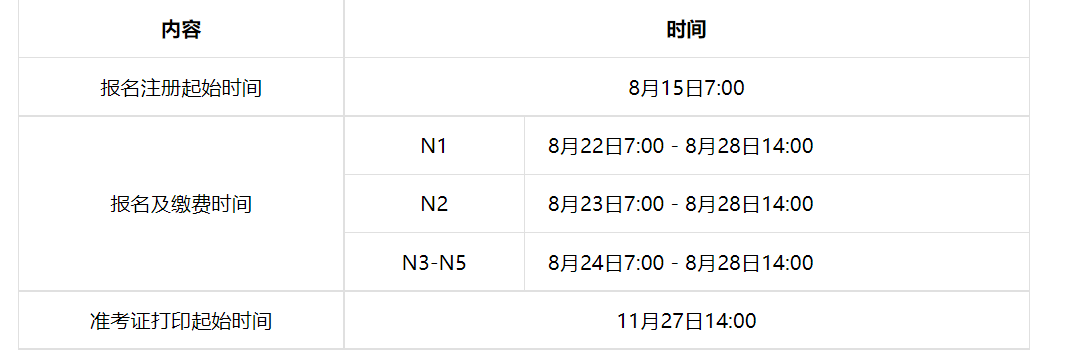 從中國教育考試網(wǎng)發(fā)布的《2023年12月日本語能力測試(JLPT)報名安排通知》得知,2023年12月河南日本語能力測試報名入口已公布,2023年12月河南日本語能力測試報名入口將于8月22日7:00- 8月28日14:00開通,8月15日起注冊信息,具體詳情如下: