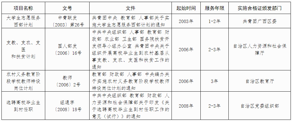 普通高校畢業(yè)生“下基層”服務(wù)項(xiàng)目一覽表
